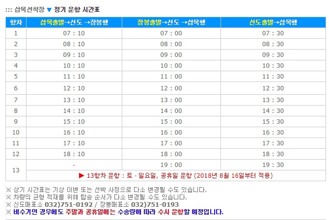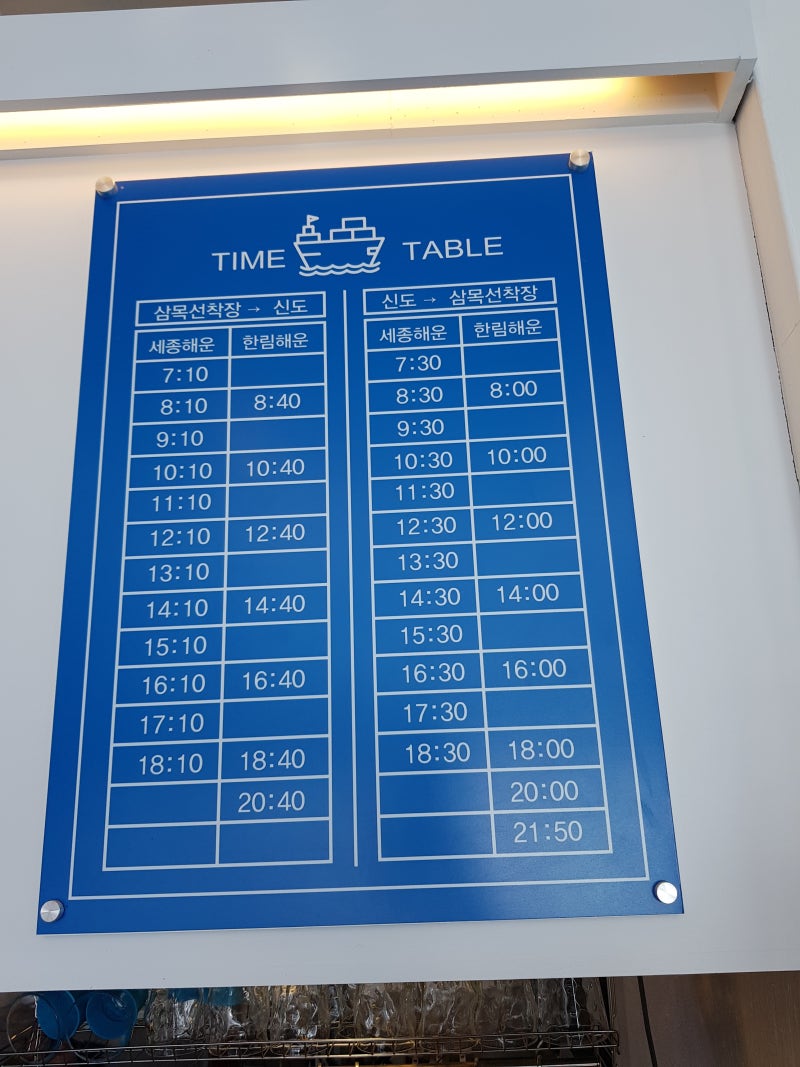 미리 배 시간 체크하시고 가시면 됩니다.*_*저희는 10:10 배를 탈 생각을 하고 9시 반경에 도착했는데 운 좋게 9시 반 배를 탈 수 있어서 얼른 갔습니다. www 그리고 신도에 갈때 차를 가지고 갈수 있어요!차를 가지고 가시면 승용차 기준 +10000원이었습니다! 차를 두고 가실 분은 삼목여객터미널 주차장을 이용해주세요.:)운항요금!