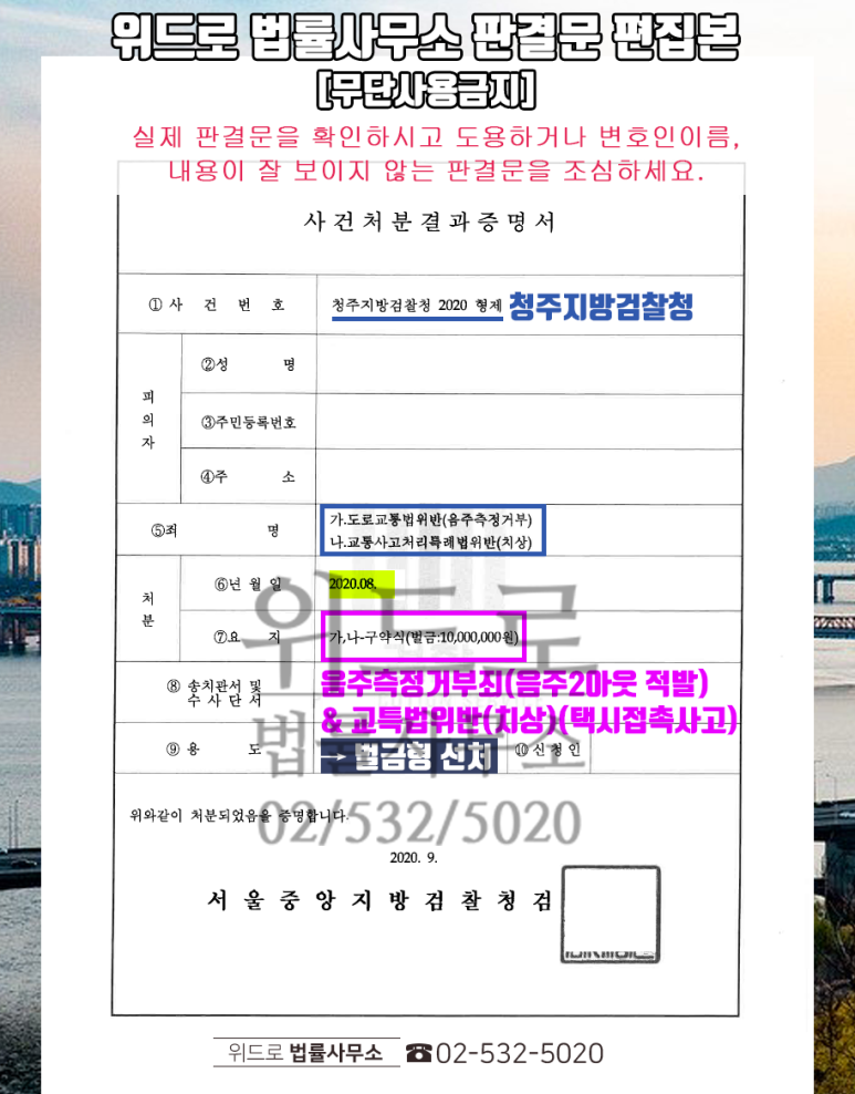 청주지방검찰청 측정거부 및 교통사고처리특례법 위반 벌금형 선고