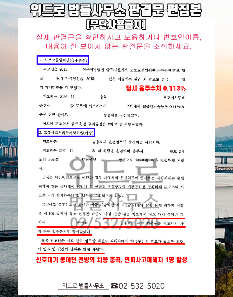 청주지방법원 충주지원 음주운전 삼진아웃&교통사고처리특례법 위반(치상) 혐의에 대한 처벌은?