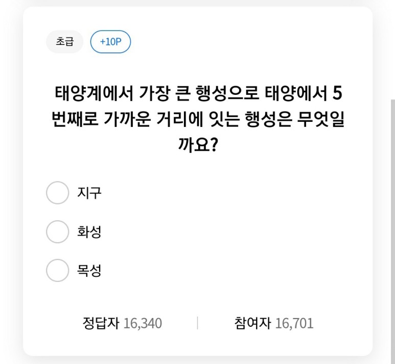 평소에 우주에 관심이 많으신 분이라면 충분히 정답을 맞힐 수 있었을 것 같아요