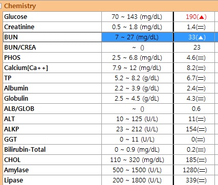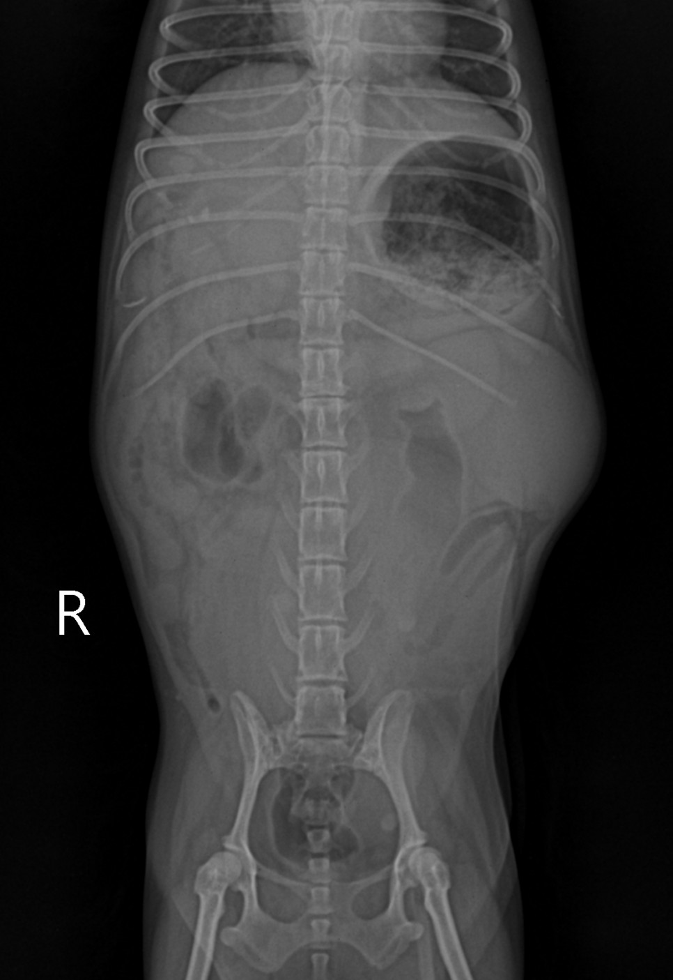 동물 병원에 내원해 주시고, 수의사의 판단으로 검사를 통해 확인이 됩니다.기본적으로 필요한 최소한의 검사는 복부 초음파 검사나 X 선 검사, 혈액 검사 등이 진단에 필요합니다.
