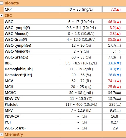 누리는 혈액검사상 전신염증 상태가 확인되어 자궁출혈에 의한 것으로 보이는 빈혈이 확인되었습니다.