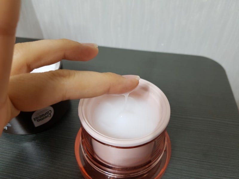 항아리를 흔들흔들 흔들어봐도 완전 고정.부드럽고 이렇게 쫀한 건 처음 봐요.부드럽게 흘러내릴 정도의 크림 혹은 아주 딱딱한 제제의 크림은 많이 봤는데 이런 제제의 크림은 정말 오랜만이야? 아니, 처음 본 것 같아.