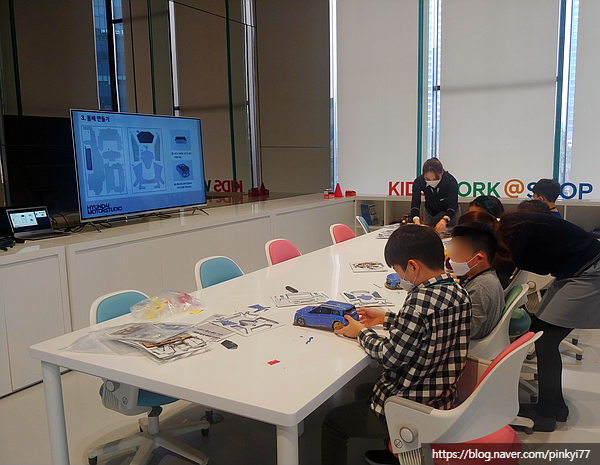 초등학교 1학년 때 1년에 꼭 한번은 갔던 ‘현대 모터스튜디오 고양’! 이사간 곳에서 매우 가까운 관계로 인테리어 시간이 얼마나 됐는지 보러 간 김에 들렀다. 레고코딩 프로그램도 있었는데 내용을 보니 아이들에게는 너무 쉬운 것 같아 고학년 프로그램인 넥소 자율주행차 만들기 프로그램을 미리 예약해 놓고 조금 일찍 도착했다.
