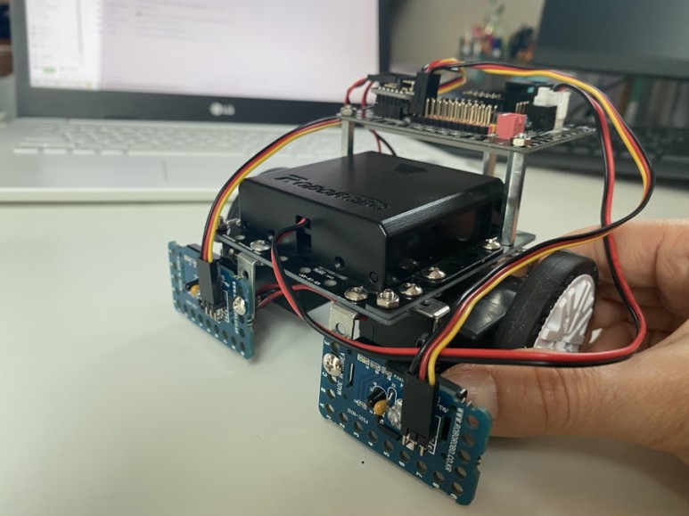 적외선 센서(근접 센서)를 이용하여 장애물을 스스로 피하는 자동차를 친구들과 만들어 보았습니다.