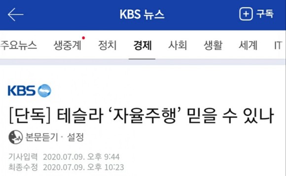 자율주행 기능은 안전한가. 마스크의 테슬라 자동차의