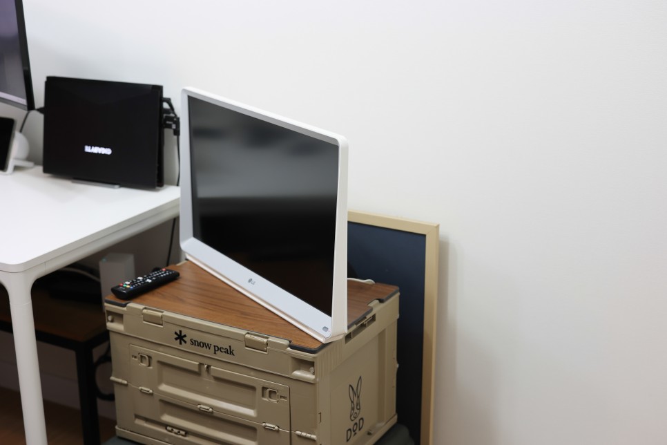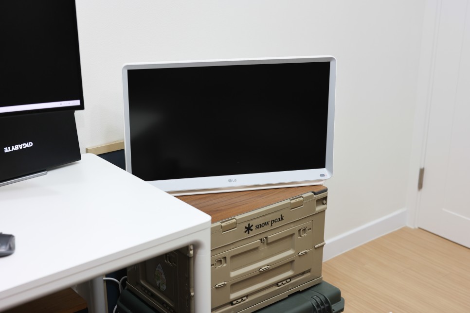 지금은 겨울철이기 때문에 아직 캠핑장에서 사용을 안 하고 있습니다 목적은 캠프인데 집에 도착해서 제 책상 옆에 두고 사용해요. LG 룸앤TV 27인치 모델은 28인치에 비해 깔끔한 디자인과 FHD 해상도를 가지고 있어 다양한 영상을 시청하는데 전혀 문제가 없습니다. 물론 일반 TV에 비해 느린 속도는 여전히 답답하지만 그 정도는 한국의 엘지라는 브랜드를 믿고 참을 수 있잖아요.