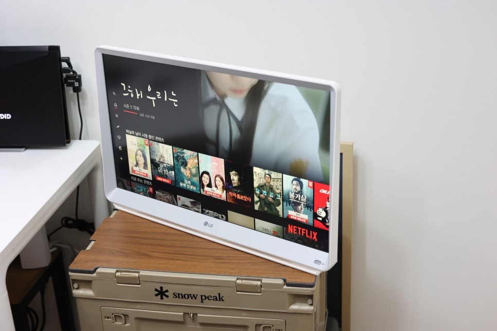 처음 리뷰를 했을 때 22019년이었는데 캠프나 넷플릭스 TV에서 공개될 줄 몰랐어요 이제 알았다면 그때 구매할께~ 생각해보니까 그동안 캠핑갈때는 빔프로젝트를 들고다녔는데 어렵게 스크린 설치해서 썼는데 지금 생각해보니까 얘가 딱 맞더라고요