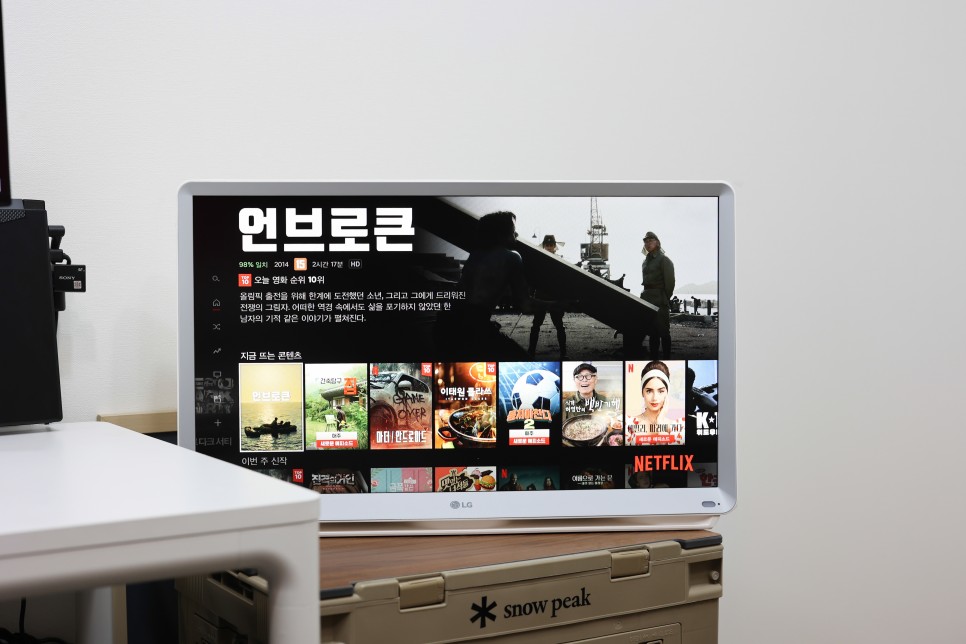 개인적으로 넷플릭스 T V에 LG 룸앤TV 27인치를 추천하는 이유는요. 한국시리즈도 많이 보는데 넷플릭스 하면 또 오리지널 미드를 빼놓을 수 없죠. FHD 해상도를 지원하므로 자막이 깨지지 않고 표현해주기 때문입니다.