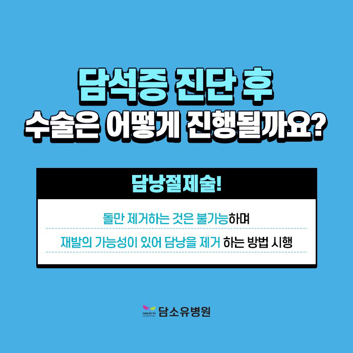담석증 수술 때문에 우선 걱정되는 것은 대개 해당 기관을 제거해야 한다는 것입니다.기능적인 문제를 걱정하며 고민하시는 분들도 많으실 겁니다.하지만 이는 다른 기관에서 기능을 대체해 주기 때문에 생활 속에서는 크게 불편하지 않습니다. 자신의 증상이 치료가 필요한 것인지 아닌지에 대한 판단 없이 무조건 방치는 금물이라고 할 수 있습니다.안전하게 진행할 수 있고 회복 속도도 빠르게 진행할 수 있는 담소유 병원이라면 더욱 안심하시기 바랍니다.
