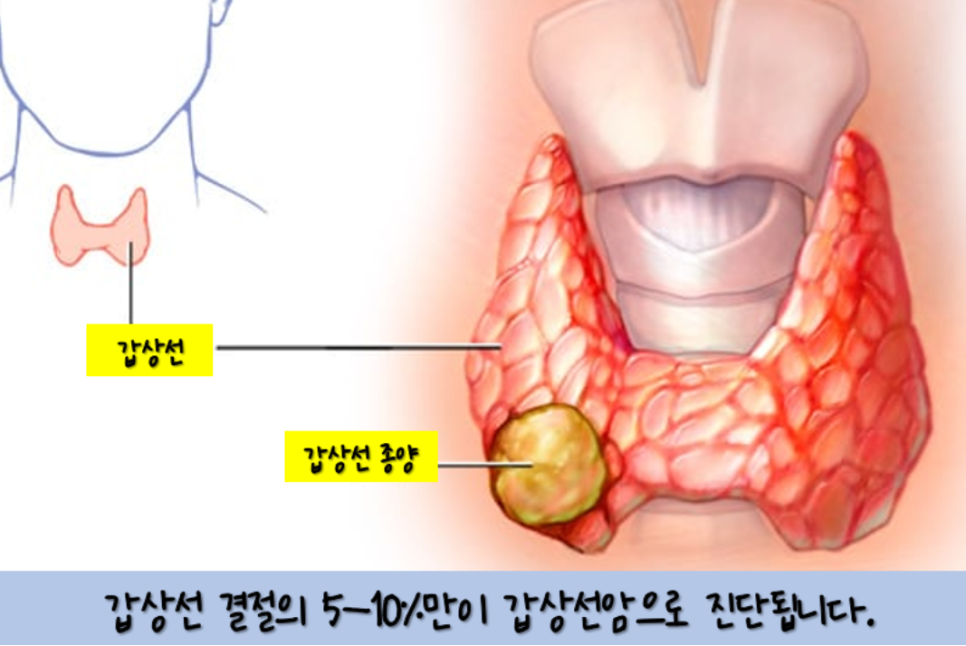 갑상선은 정상적인 경우 쉽게 만지는 부위가 아니라 인후기저부 호흡하는 공기 통로인 기도의 앞쪽에 위치한 나비 모양의 중요한 내분비선으로 여기에 암이 발생하면 갑상선암입니다.
