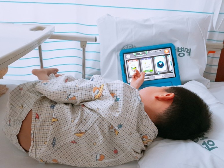 얘 게임하면서 마취 잘 깨고 있어요.아