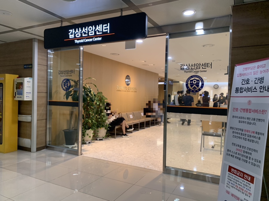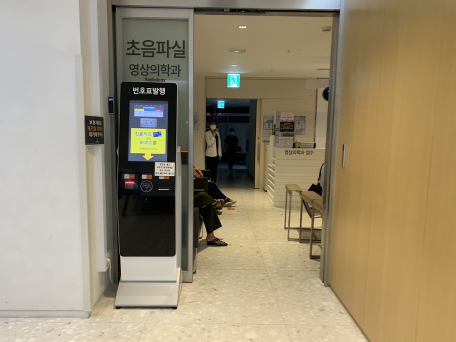 갑상선 초음파를 찍으러 2층 암병원의 초음파 찍는 곳으로 이동한 날, 특히 사람이 많아 검사가 계속 막힌다 대기에서 검사 종료까지 40여 분 걸리는 환복을 못하고 바로 검사하고 검사도 금방 끝난다