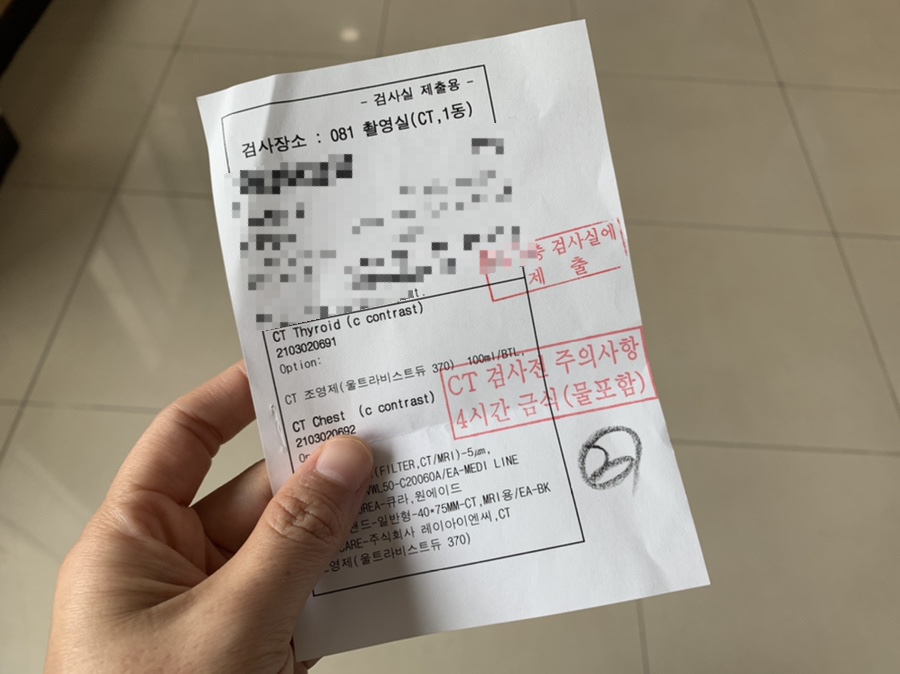 갑상선암이라는 걸 알고 수술 전 검사할 때는 너무 정신도 없어서 ct가 어떤 검사인지도 모르고 찍었는데 아니까 더 떨리는…