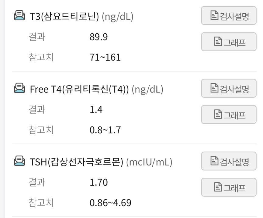 이번 피검사 수치 freet 4는 계속 1.4 유지 중