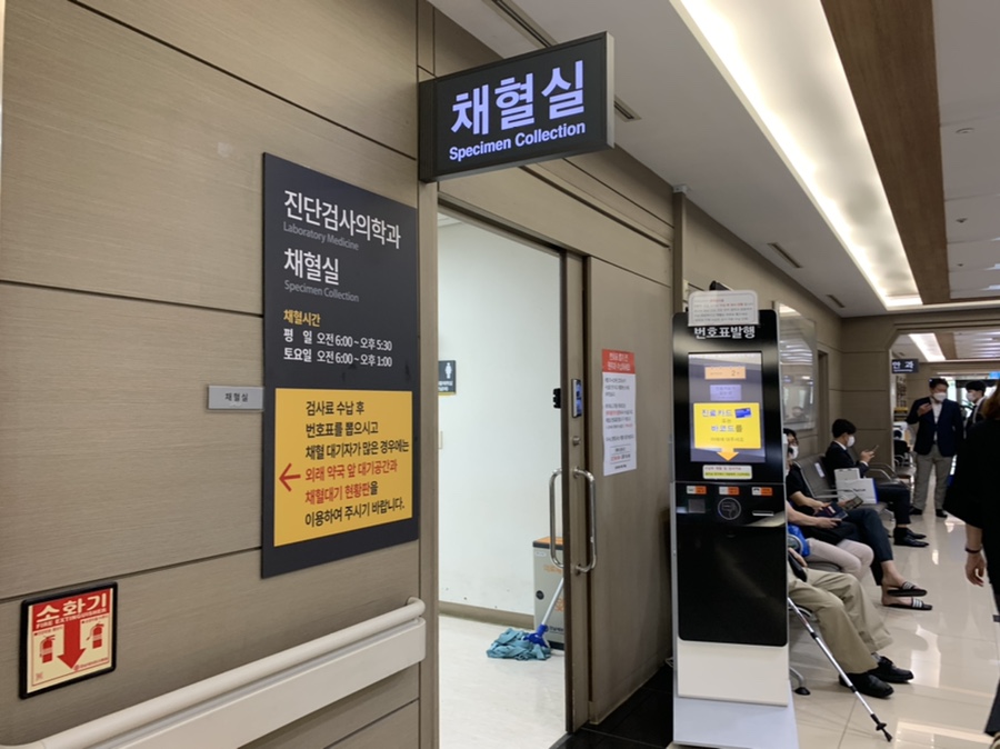 우선 채혈 채혈은 진료시간 2시간 전에 해야 한다.금식 필요없어 역시 이날도 한방에 끝내는
