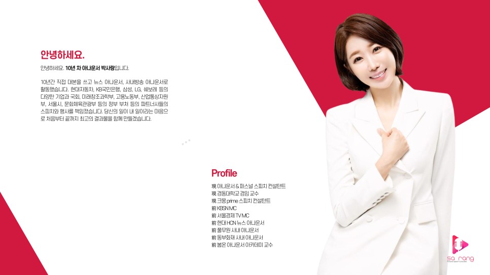 안녕하세요 스피치의 달인 박사님과 아나운서님이 작업하신 프로필
