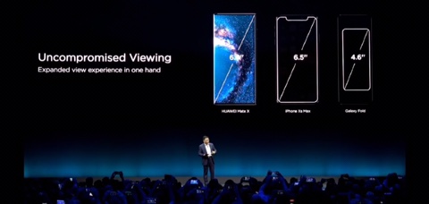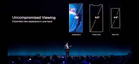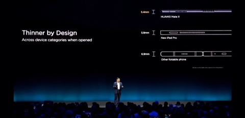 벌렸을 때의 두께 차이(화웨이, 아이패드 프로, 삼성 갤럭시폴드)-삼성이 실수한 두께를 자주 꼬집은 화웨이.
