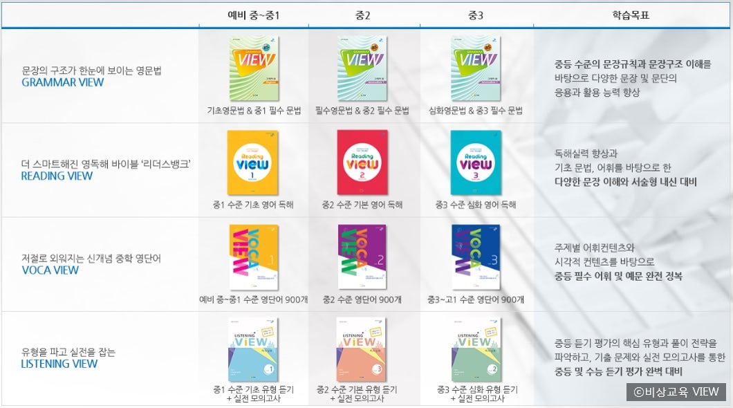 초등 학교 때는 주로 어학 중심의 학습을 합니다만, 중 영어는 문법, 독해, 어휘 학습을 동시에 추진해야 하며 난이도가 높아지고 있기 때문에 기본기를 꼭 잡고 공부하지 않으면 영어가 굉장히 어렵게 느끼는 것이 있습니다.단순한 학교 시험이 수행 평가나 퀴즈형 시험 등이 이뤄진 것이어서 입시형 영어에 대비한 효율적인 학습 법 공부하는 것을 추천합니다.중학교 과정을 통해서 고교 과정에 미리 준비할 수 있게 어휘, 독해, 문법 공부부터 시작하고 체계적인 품사별로 어휘의 변화와 잘 출제되는 동의어 반의 말은 공부하는 것이 도움이 됩니다!
