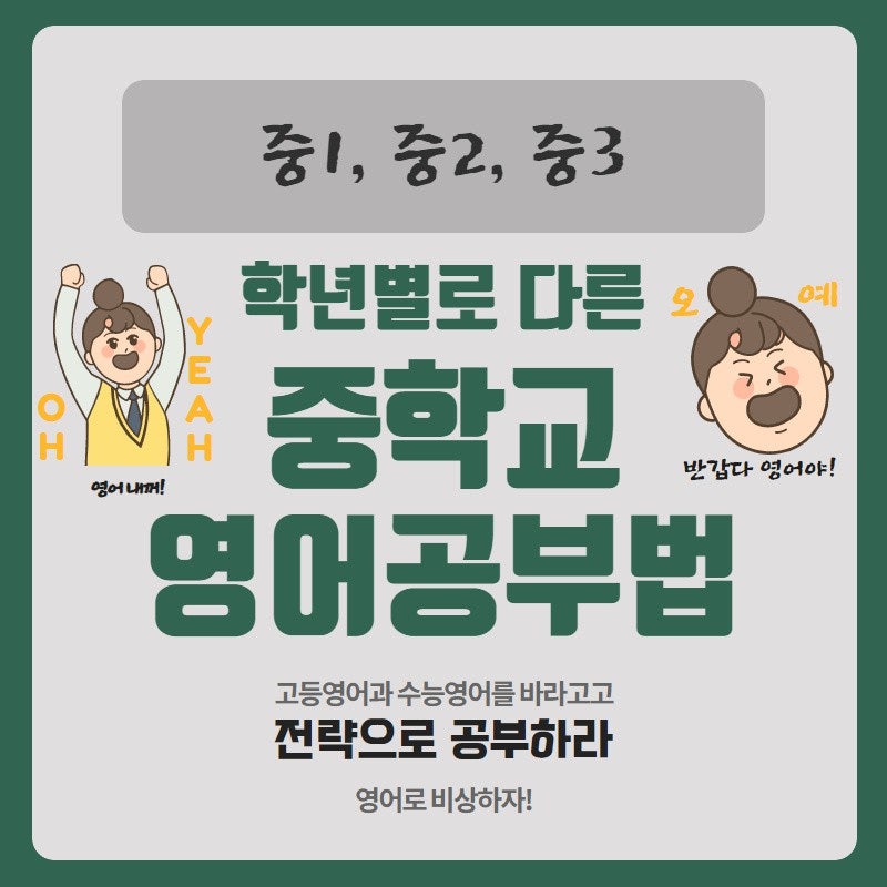 초등 학교 때는 주로 어학 중심의 학습을 합니다만, 중 영어는 문법, 독해, 어휘 학습을 동시에 추진해야 하며 난이도가 높아지고 있기 때문에 기본기를 꼭 잡고 공부하지 않으면 영어가 굉장히 어렵게 느끼는 것이 있습니다.단순한 학교 시험이 수행 평가나 퀴즈형 시험 등이 이뤄진 것이어서 입시형 영어에 대비한 효율적인 학습 법 공부하는 것을 추천합니다.중학교 과정을 통해서 고교 과정에 미리 준비할 수 있게 어휘, 독해, 문법 공부부터 시작하고 체계적인 품사별로 어휘의 변화와 잘 출제되는 동의어 반의 말은 공부하는 것이 도움이 됩니다!