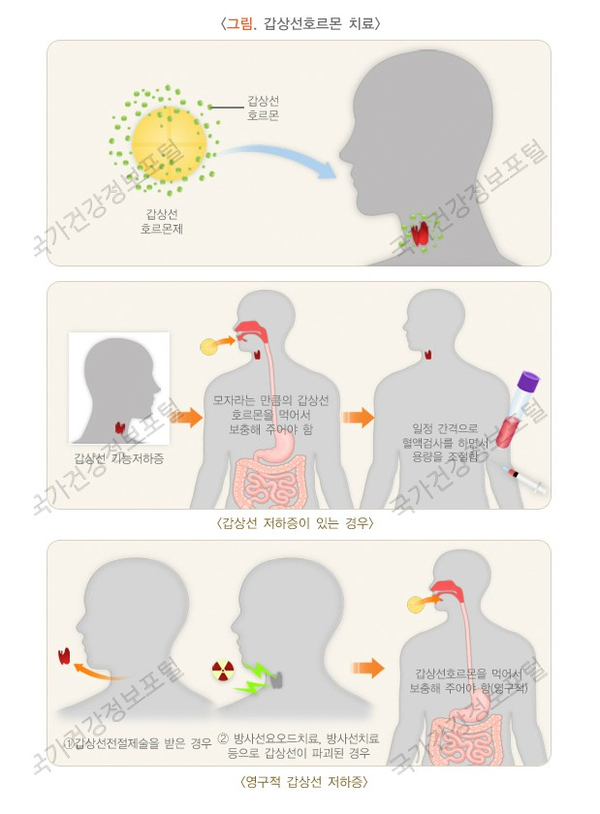 호르몬제 처방을 받게 되면 복용법을 반드시 지켜야 재발을 방지하고 보다 빠른 치료를 가능하게 합니다.갑상선 기능 저하증 호르몬 약을 처방받으면 반드시 아침 일찍 공복에 섭취 충분한 물과 함께 (다른 음료, 주스는 안 된다)비타민제나 다른 질환의 약과 함께 복용할 수 없는 약을 복용 후 30분간은 아무 음식도, 주스도 먹지 않는 것이 좋다고 합니다.50세 이상 노인, 심장질환과 관련이 있는 경우에는 고위험군에 속합니다.특히 임산부의 경우 갑상샘기능 저하증이 의심되면 의사의 처방을 받고 호르몬 투약은 반드시 지켜야 합니다.이는 태아에게 뇌발달과 골격근의 성숙을 가져오는 중요한 호르몬이기 때문에 임신기간에는 이 호르몬을 충분히 공급해야 합니다.