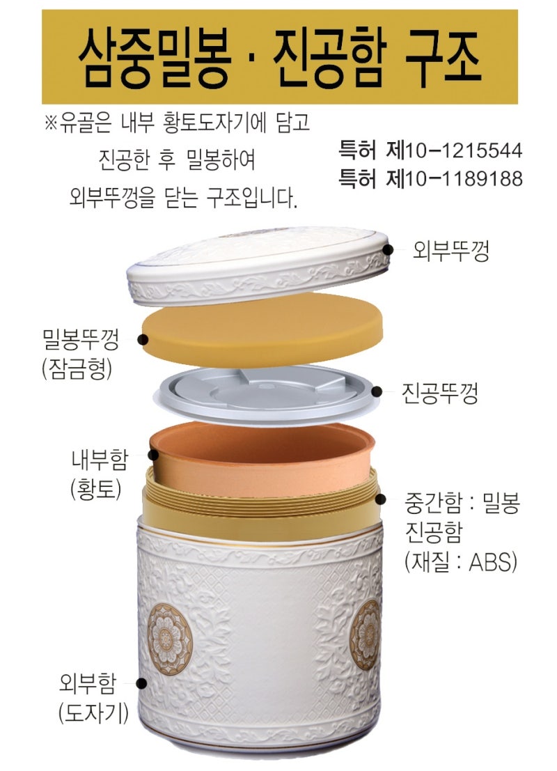 가족을 추모시설로 모시기로 결정하셨다면 모실 장소가 실내 납골당이든 야외 납골당이든 유골함, 납골함, 봉안함 등에 진공을 필수로 하셔야 합니다.검색을 통해서 저렴한 유골함을 찾으시는 분들도 계시겠지만 싼 것이 비지떡이라는 말이 있듯이 품질을 모르는 중국산 제품이 많이 있으니 그것도 잘 알아보고 구입하는 것이 좋습니다.