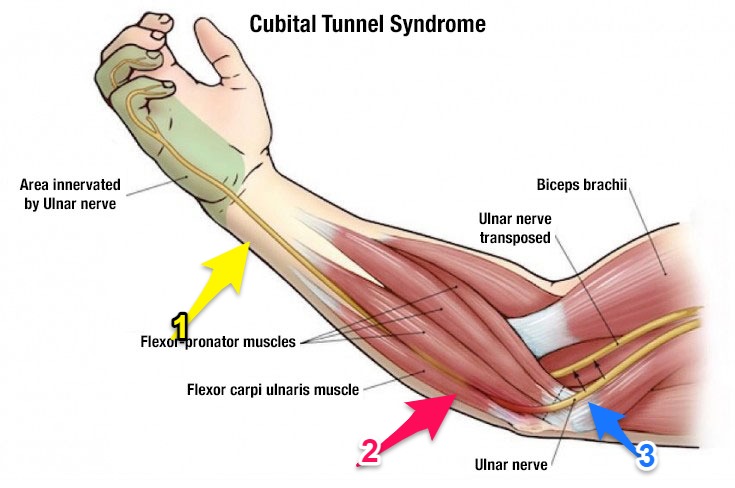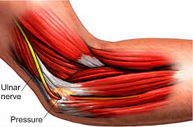 노란색 척골신경이 팔꿈치로 눌려 있어요https://premierneurologycenter.com/conditions-treatment/ulnar-neuropathy/ https://www.healthdirect.gov.au/surgery/ulnar-nerve-release