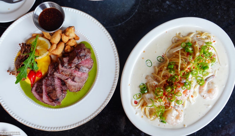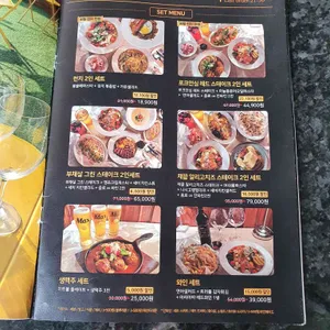 어떤 거 먹어볼까? 고민했어요 요즘 메뉴가 바뀌었나요? 더 맛있어 보이는 게 많아졌어요. 저희는 세트 메뉴를 선택했습니다. 목살 그린스테이크 2인! 목살 그린스테이크와 제가 좋아하는 양송이 까르보나라 세미치킨 샐러드 감자튀김 음료 2잔 or 와인 2잔 이렇게 선택하실 수 있습니다. 오븐파이 알로와요 스테이크도 너무 맛있어 보여서 다음에 꼭 먹어볼게요.:)