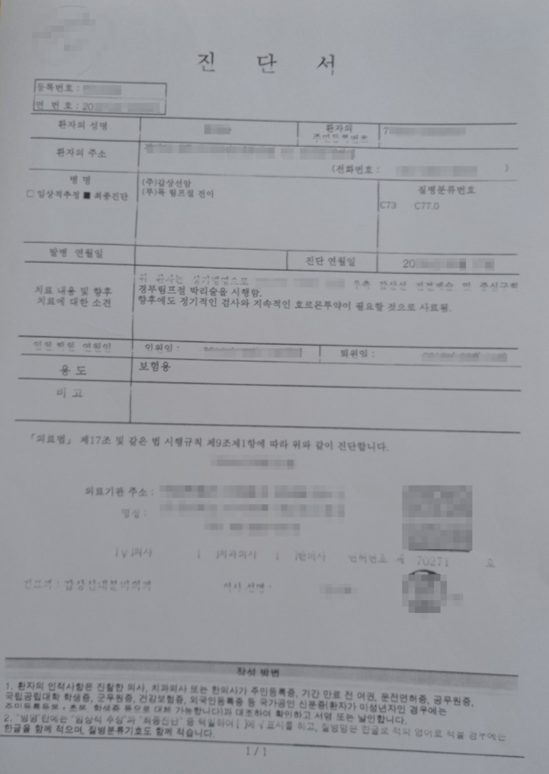 특히 일반적으로 암 보험의 경우 매우 두꺼운 약관의 내용을 일반인이 모두 숙지하기가 쉽지 않기 때문에 지금처럼 갑상선암 림프절 전이의 상황에서 암 보험 보상이 어떻게 적용되는지 규정을 알아내기가 쉽지 않을 것입니다.