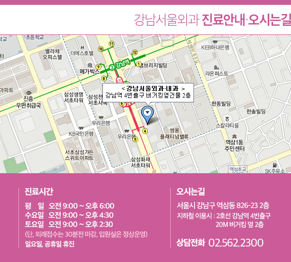 저희 강남서울외과에서는 갑상선 초음파로 결절 여부를 확인하여 결절 악성/양성 여부를 진단합니다.초음파는 갑상선 진단에 널리 사용되는 과정에서 결절의 형태와 위치, 크기, 깊이 등을 세세하게 검사하는 방법입니다.초음파로 볼 수 있는 결절에 미세석회화가 보이거나, 내부의 성상이나 경계가 자연스럽지 않은 경우에는 미세침 흡인 세포검사나 중심부의 침생검 등을 추가로 실시하고 있습니다.