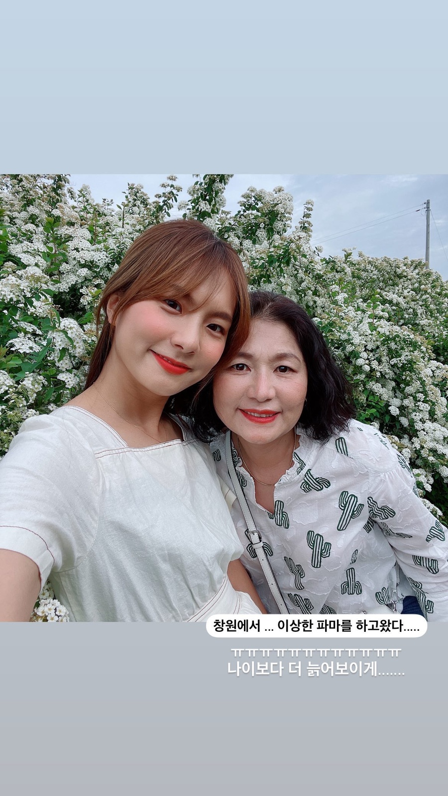 보이나요? 하아… 정말 충격적이야 아니 원래 나이보다 늙어보이고 머리가 상해서… 완전… 할머니처럼 파마를 해놔서… 어떻게 사진을 찍어도 예쁘지 않고… 완전 가족 모두 마음이 아프고 아파서…