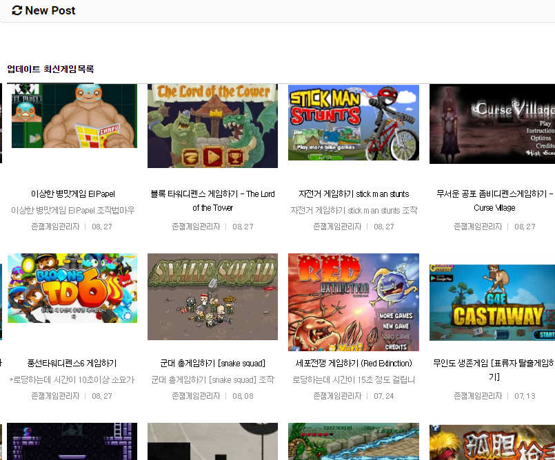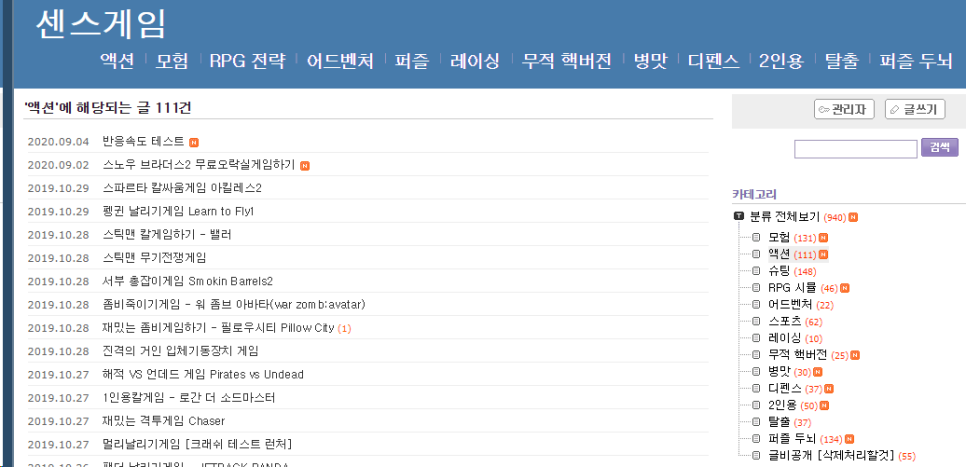 그리고 플래시 게임 사이트 추천 외에 이번에는 게임을 즐길 수 있는 블로그를 소개해 드리는데, 바로 센스 게임이라는 점입니다. 처음 접속을 하면 이렇게 화면이 나옵니다. 이것은 최신 업데이트 된 목록입니다.