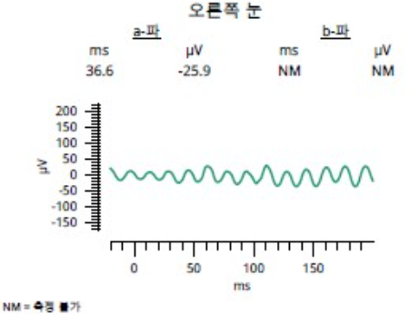 정상ERG(망막전위도검사)사진/망막변성에 의한 비정상적인 ERG사진)
