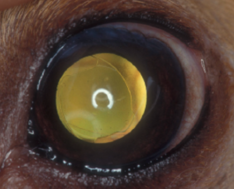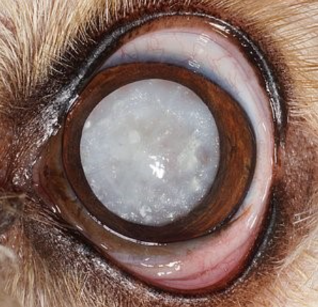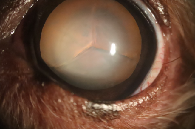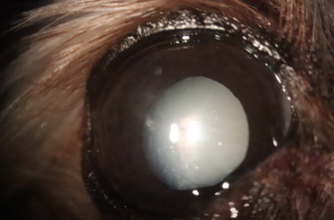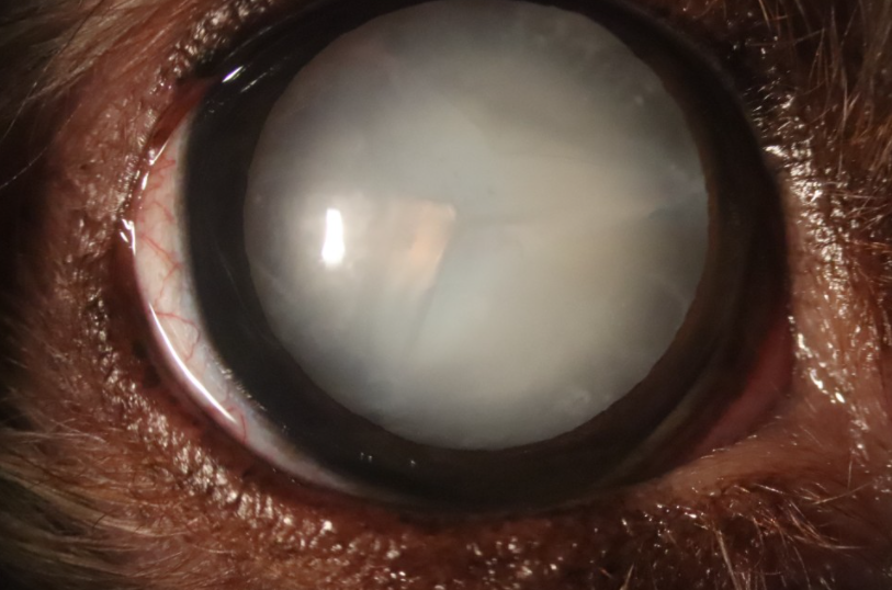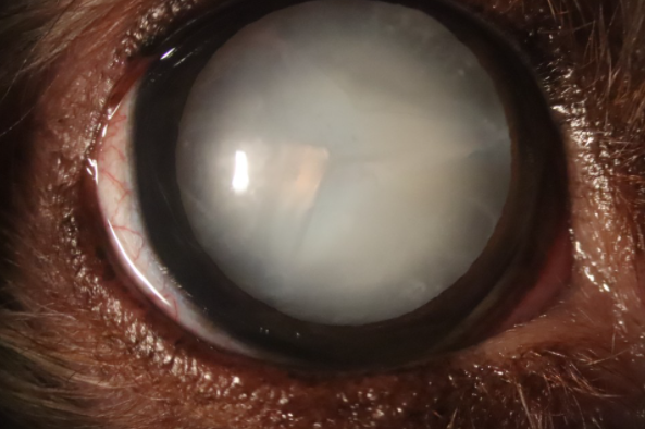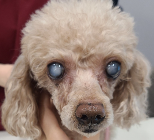 반려동물에게 발생하는 백내장의 형태는 작은 점이나 흰 선, 혹은 얼음의 균열, 진주알 모양의 광택, 뿌연 안개 등 다양한 형태로 나타날 수 있습니다.