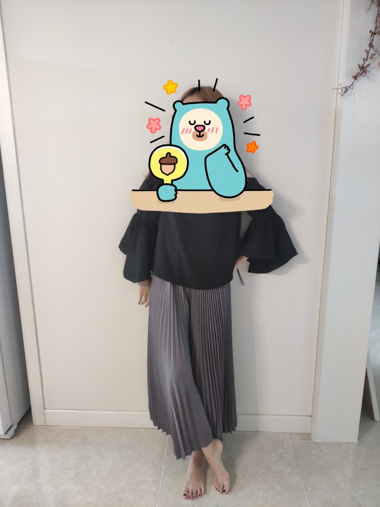 통바지라 치마처럼 보이지만 사실은 바지예요!주름이 정말 많이 들어가 있어요.~~?