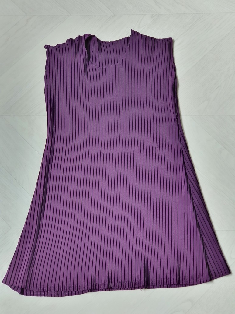 색이 예쁜 보라색 플리츠 나시를 보여드릴게요!라포르비에서 직접 제작하는 플리츠 원단이라고 하는데 구김이 없어서 정말 다행이에요 ~