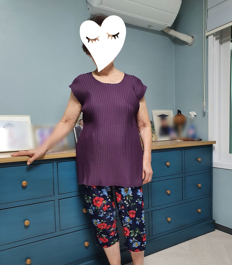 플리츠 옷이 확실히 날씬해 보이는 효과가 있는 것 같아요원단자체가 시원해서 여름에 입기 좋은 옷이에요~