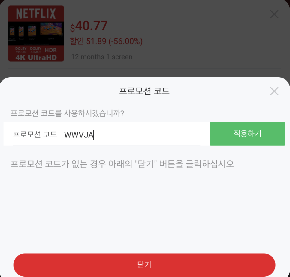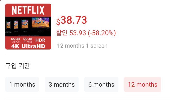 그 전에 넷플릭스 할인방법 https://www.gamsgo.com/ 접속해서 WWVJA ← 이 할인코드를 넣으면 일년에 38.78로 이용할 수 있지만 그러면 한 달에 3.2달러, 그러면 한 달에 4천원 미만으로 넷플릭스를 즐길 수 있습니다.