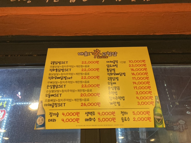 직화무뼈닭발세트 22,000맥주(카스) 4,000