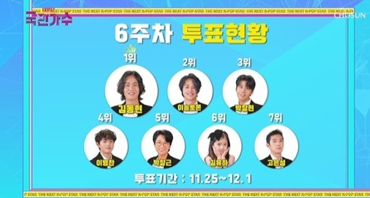 6주차 투표 순위는 1위 김동현, 2위 이솔로몬, 3위 박찬현, 4위 이병찬, 5위 박창근, 6위 김유하, 7위 고은성이 이름을 올렸다.