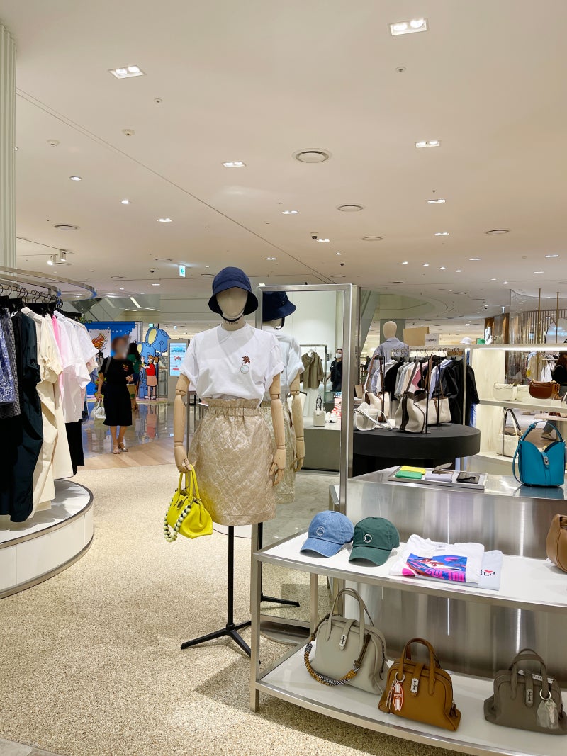 팝업스토어에 진열되어 있는 데님 모자와 니트 백을 함께 스타일링 하시면 캐주얼하면서 세련된 느낌을 받으실 수 있습니다.이런 스타일링은 별로 도전하지 않았는데 사진을 보니 예뻐서 이번에 도전해보려고 합니다.