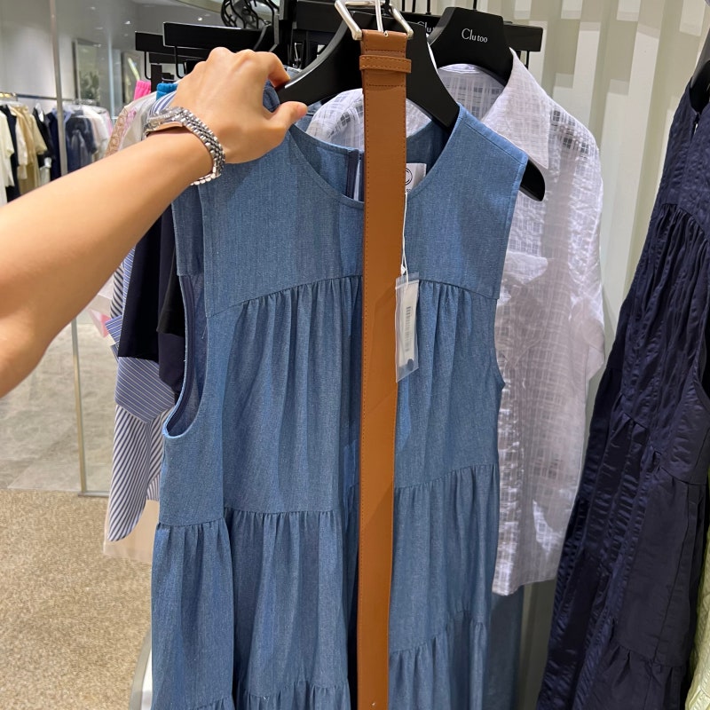 팝업스토어 입구에서 마네킹이 입을 원피스를 원해서 바로 입어봤어요.오버핏으로 편하게 입으실 수 있으며 가방이나 모자 등으로 포인트를 주시면 전혀 다른 느낌으로 연출하실 수 있는 베이직 아이템이라 겟하시면 좋을 것 같습니다.
