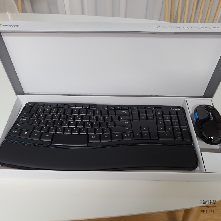 나처럼 손목터널증후군을 걱정하는 사람에게 좋은 마이크로소프트 무선키보드 마우스세트 스컬프트 컴포트 데스크톱 모델이다.