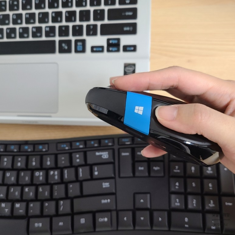무선 마우스의 기능 버튼을 확인하고 인체공학 무선 키보드 마우스 세트 마이크로소프트사의 다른 마우스를 사용한 적이 있어 일부 기능은 사용한 적이 있지만 이 제품만의 기능도 있어 매력이 달랐다.