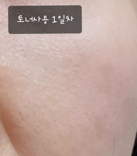 토너 사용 전에는 모공이 두드려 피부에 윤기가 있는 건조한 피부입니다. ㅠㅠ요즘 피부에 전혀 신경쓰지 않고 살아서…조금 신경써서 게으름을 피우면 다시 옛날 피부로 돌아갑니다.