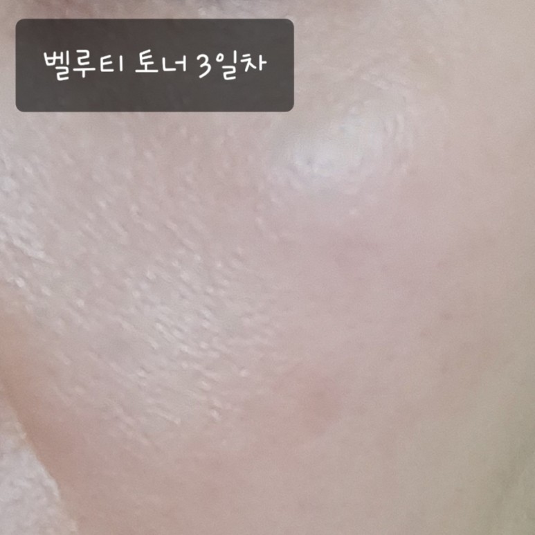 벨티토너 사용 후 원래 세안 후 한 병만 바르고 ‘땡’ 했는데… 토너를 쓰니까 오호 밝아진 것 같습니다.모공이 눈에 잘 띄지 않네요 후후후