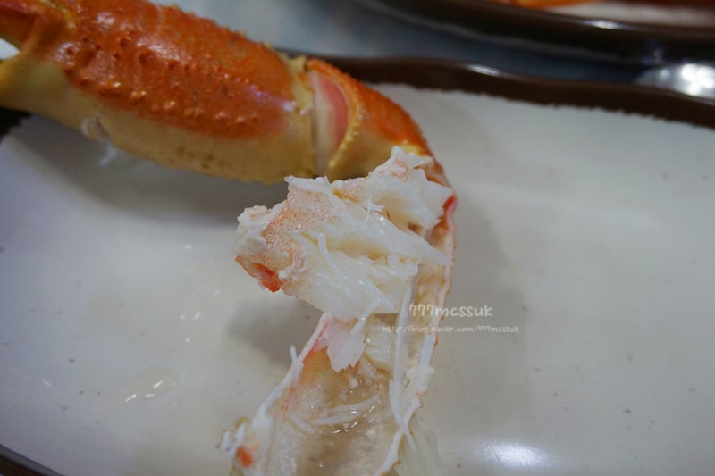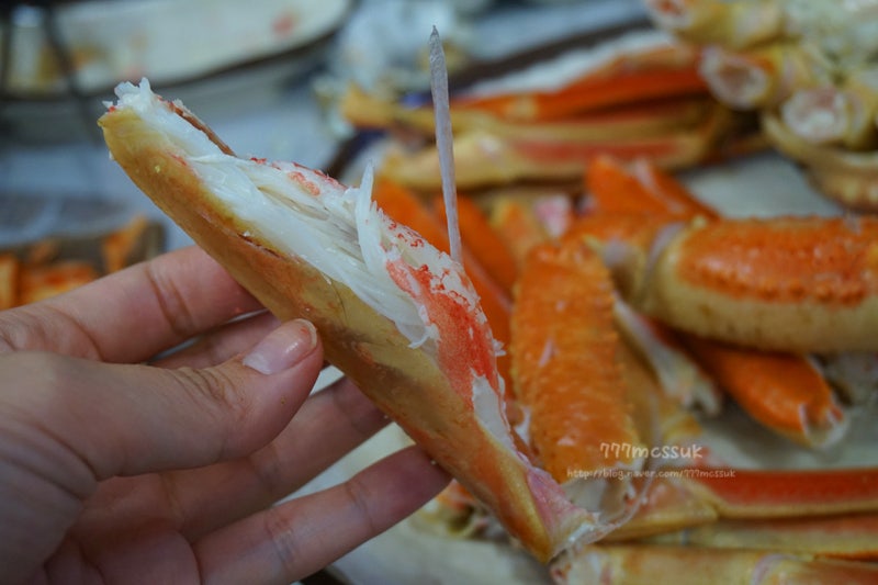 건물 전면 앞에 보이는 대게와 킹크랩의 모습.확실히 신선하긴 해요.