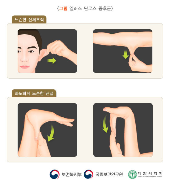 엘라스 던로스 증후군도 관절이 과도하게 늘어나는 과운동성이 있어