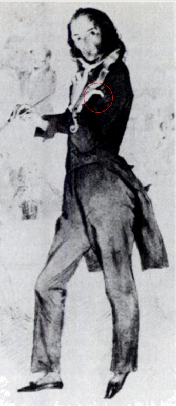 예를 들어 파가니니의 그림을 보면 왼손 엄지손가락이 거의 뒤를 향하도록 구부러져 있습니다.