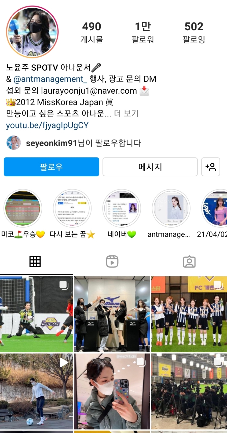 노유진 아나운서 프로필 나이키 학교 가족